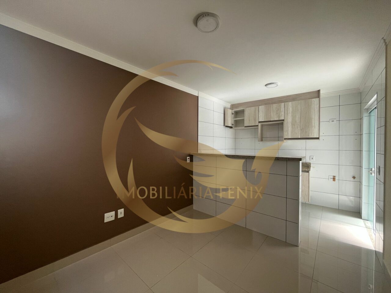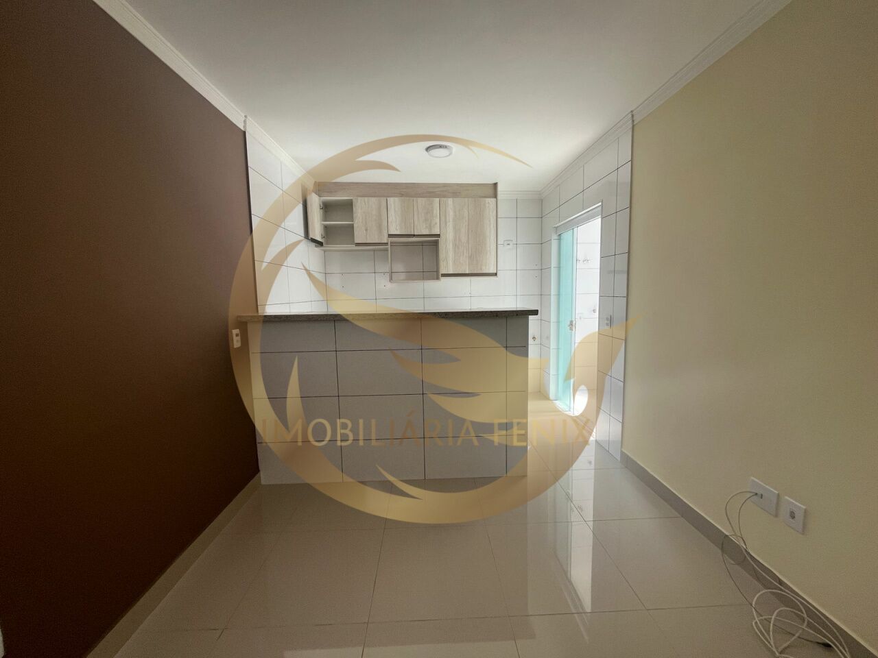 Unidade com sala ampla, cozinha americana com armários, 1 dormitório, banheiro com box de vidro e chuveriro e área de serviço.