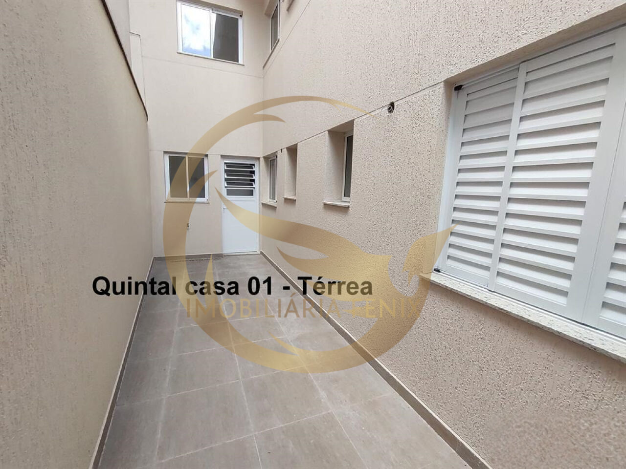 Casas com 2 ótimos dormitórios, o principal mede 3,55 x 3,70, com sacada e o outro 2,70 x 3,50. Sala ampla para 2 ambientes conjugada com a cozinha que tem pia em L e piso em porcelanato, molduras de gesso em todos os ambientes, área de serviço, todas as janelas e portas balcão são amplas, e em alumínio branco. Excelente luminosidade e ventilação Escadas de acesso em granito Água, luz e gás de rua independentes para cada casa. 1 vaga de garagem grande, que cabe 1 veículo de grande porte ou até mesmo um carro pequeno + uma moto. Portão automático Aproximadamente 65 m² de área útil * Localização privilegiada, está a 150 metros do Banco Itaú, transporte público e comercio em geral.