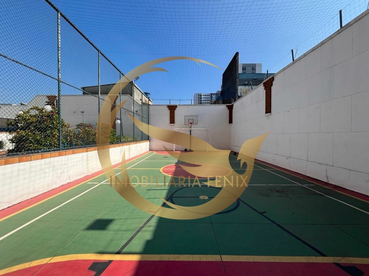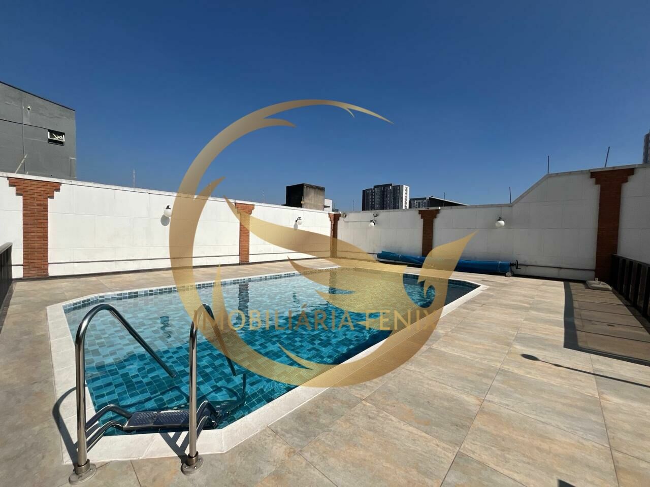 Área de lazer com salão de festas, quadra, piscina e academia.